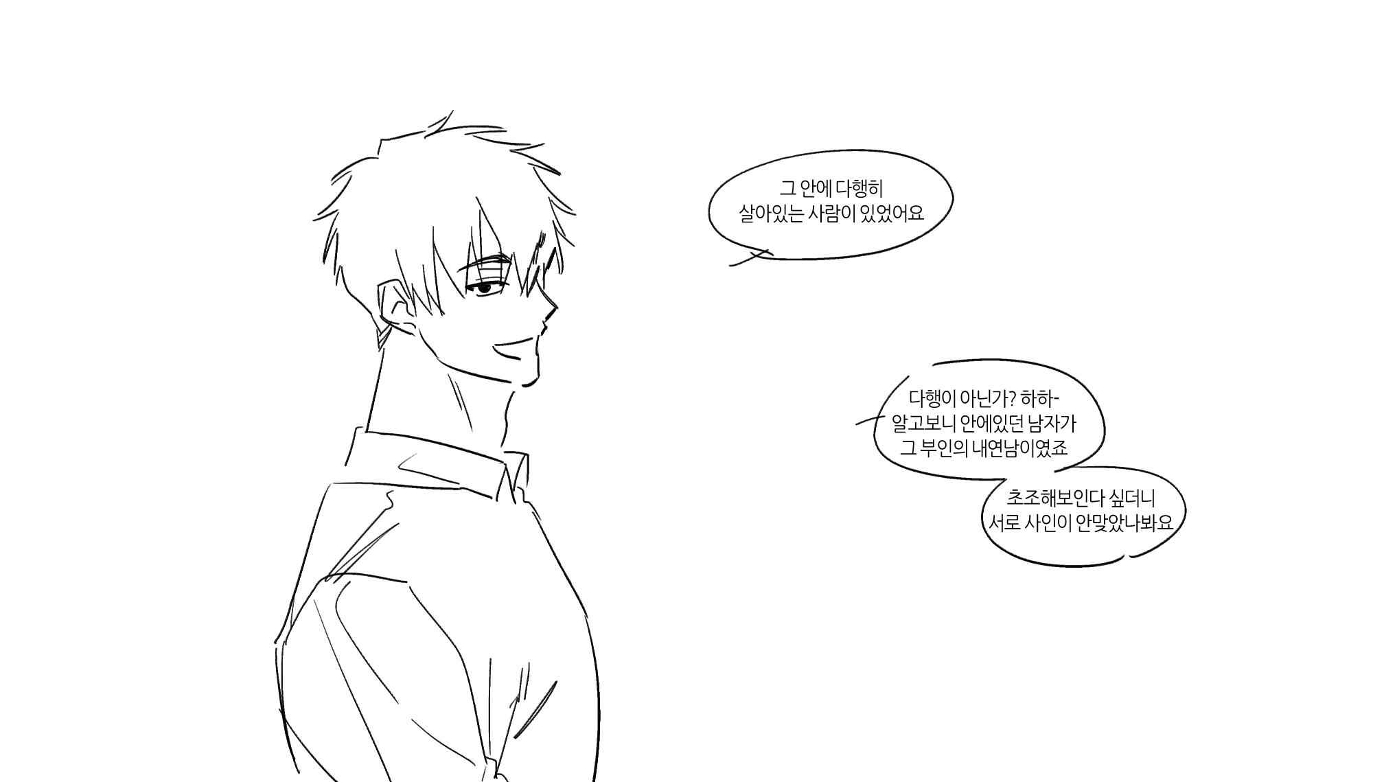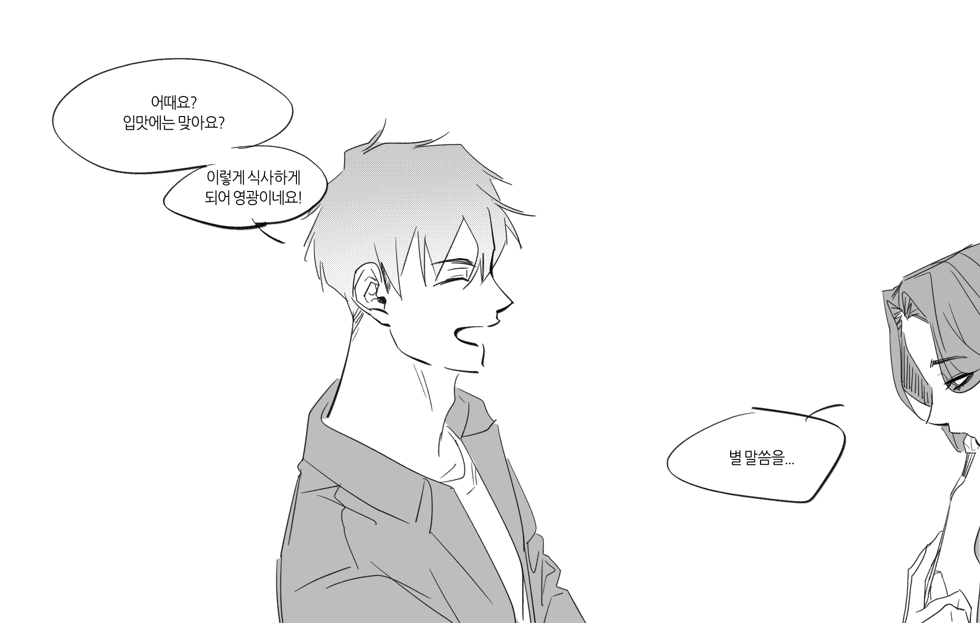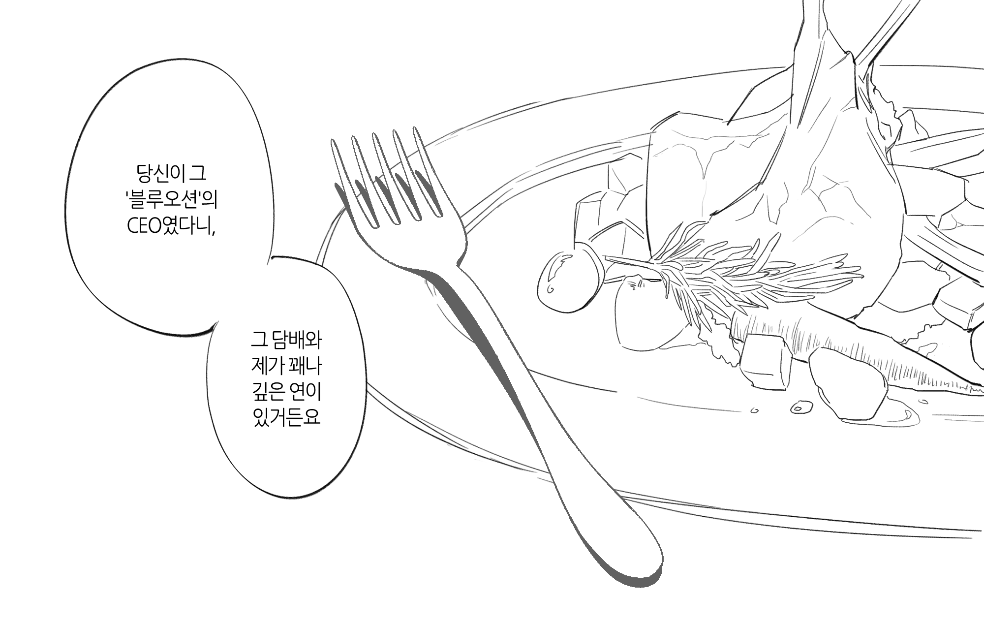 (상대를 관찰하고, 파악하고, 이야기를 들으며 상대의 인생을 그려보고. 그것을 이용하는 인간보다야 그저 즐겁기 위해 관찰하는 이가 더 낫지 않을까. 굳이 이 생각을 입밖으로 꺼내지는 않은채로 시선만 마주한채 또다시 몇초간 침묵하다가 입꼬리만 당겨 미소를 짓는다. 눈까지 접지 않은 웃음은 다분히 의도적인 것이었다) 내가 무슨 생각을 하고있는지 알겠어요?