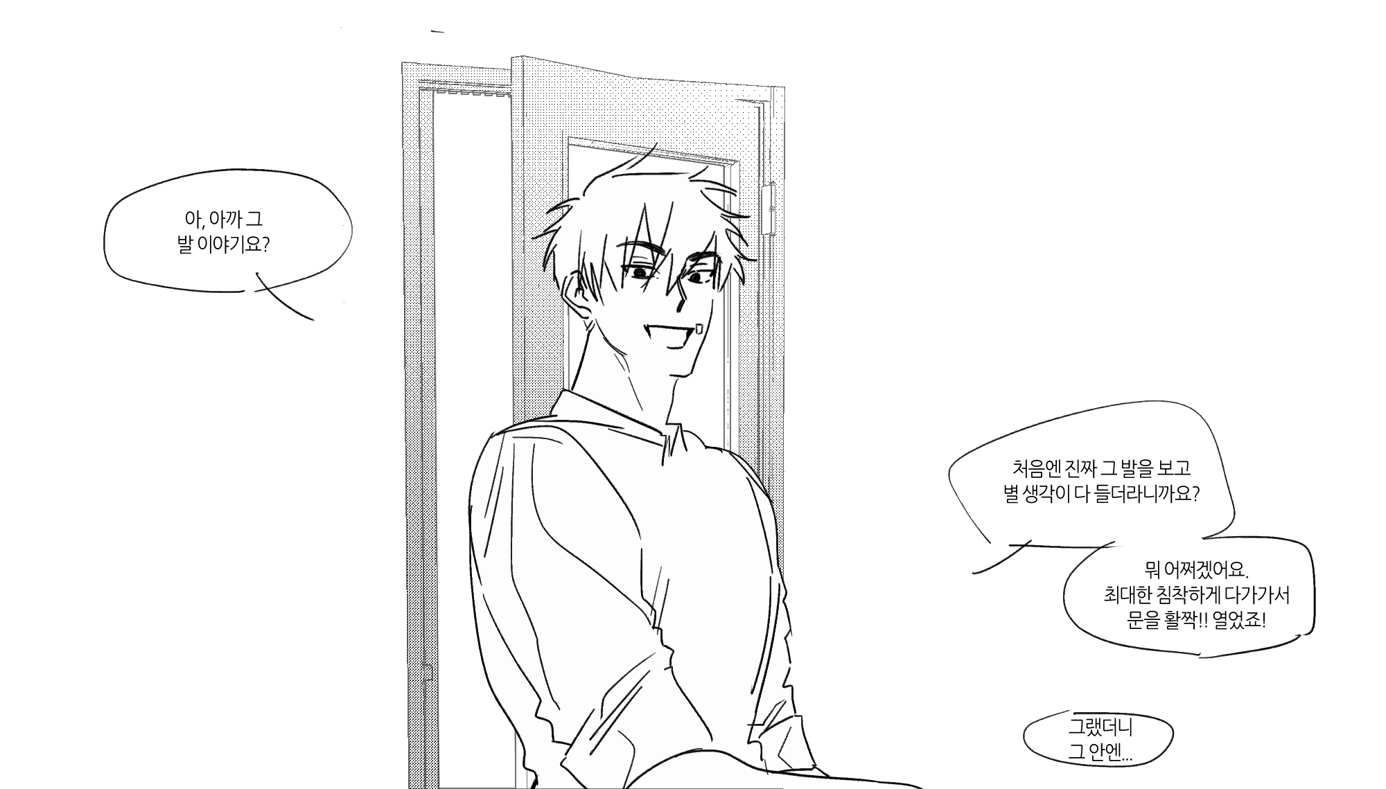 아, 근데 붕대도 새로 감아야하고.. 펜도 지금은 없는데 잠깐 따라올래요? 바로 이 앞이 내 방인데. (활짝 웃은채로 제 뒷편을 손으로 가리키다가 무언가 생각났다는 듯 능청맞게 이어말한다) 음흉한 생각으로 부르는건 아니고요~!