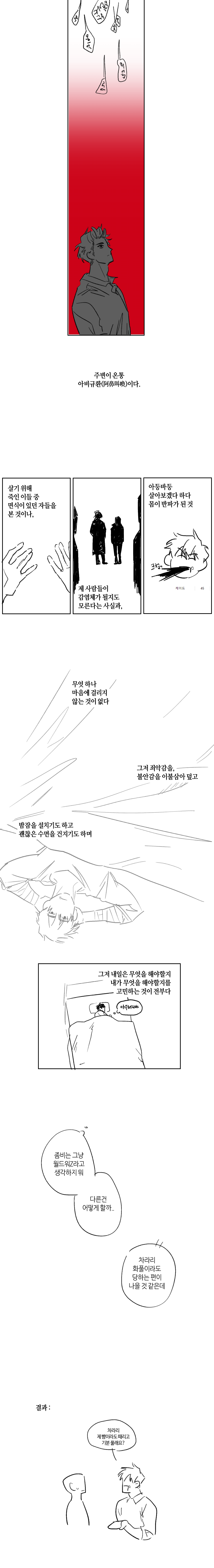 (저 눈으로는 세상을 어떻게 보고있는걸까. 발치에 부서지는 것과 크게 다르지 않은 감상을 느끼나? 스쳐지나갈때의 찰나를 즐기고 부서져 떠나는것을 버려가며 시간을 죽이고 사는건지.) 이해야 뭐, 못할수도 있죠. 애초에 난 희생을 후회하지 않을 수 있는 이유는 희생한 뒤가 존재하지 않음이라고 보니까.
